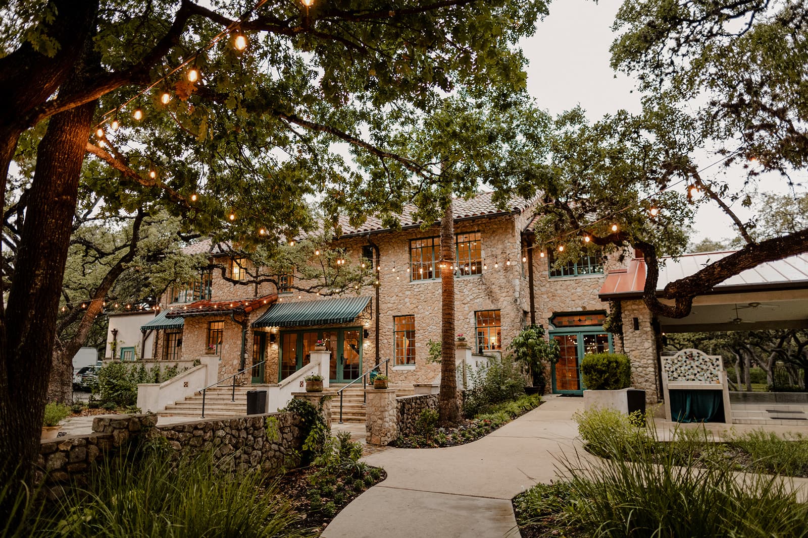 Nestled in a lush green haven in the heart of San Antonio, the Veranda is an event space like no other. The original “castle on the hill” offers no less than seven event spaces to mix and match, including the 1931 estate house built of local stone, an artist cottage, an airy covered pavilion, and rolling, oak-lined lawns.