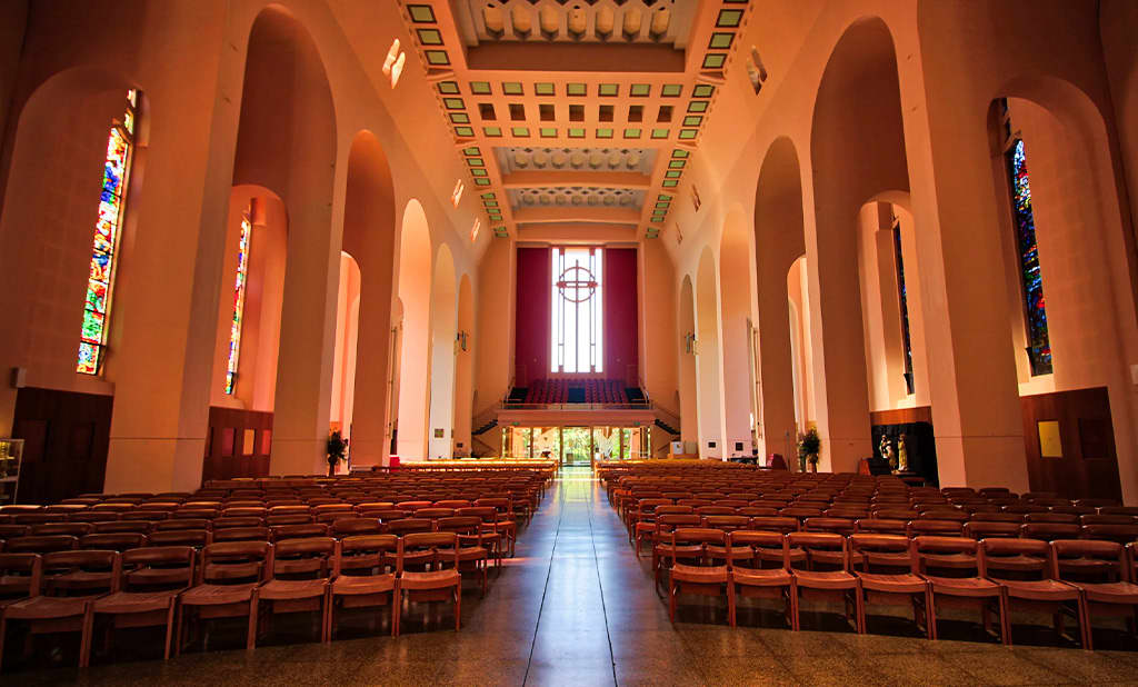 Historic cathedral near New Zealand’s Parliament, blending striking architecture, luminous stained glass, profound heritage, and serene acoustics in a deeply spiritual, iconic space.