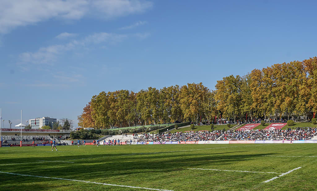 El Estadio Nacional Complutense, conocido como El Central, es uno de los templos históricos del rugby español. Ubicado en pleno campus universitario de la Universidad Complutense de Madrid, destaca por su ambiente auténtico y su estrecha conexión con el rugby nacional. Su cercanía al campo y su carácter emblemático lo convierten en el escenario perfecto para vivir partidos cargados de intensidad y tradición, en un entorno único y muy ligado a la historia de este deporte.