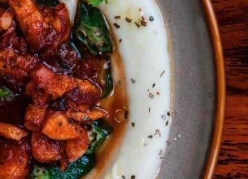 - Spicy shrimp- freshly caught sea shrimp pan-seared with habanero and topped with warm salsa on a plantain coracle