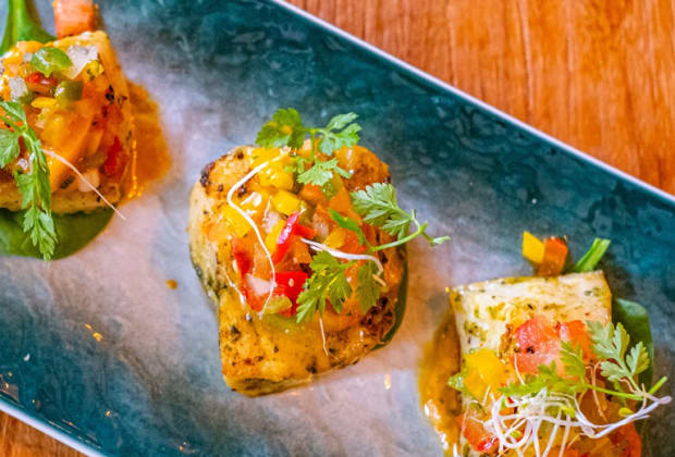 - Carnival market - pan-seared fish snapper with Jouvert sauce and topped with tomato salsa