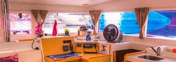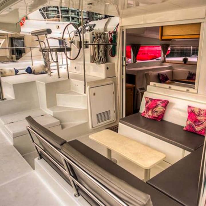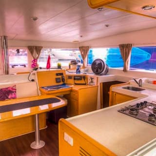 - Full deck of amenities onboard the yacht: shower facilities, bathrooms, 3 cabins, kitchen facilities
