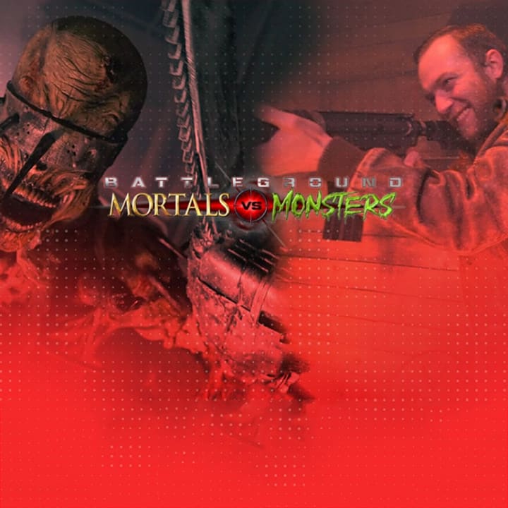 Battleground: Mortals vs Monsters is a realistic, tactical laser tag experience. Put your survival skills to the test by taking down the monsters unknown, portrayed by real life actors! Professional costume and makeup teams turn these actors into Hollywood quality creatures, making this one of the most realistic monster hunting experiences ever created. You will receive defense mechanisms to protect yourself against the unknown as you journey through monster-infested areas filled with post-apocalyptic scenery. Watch behind you: surprises will come from all around! Think you can survive?