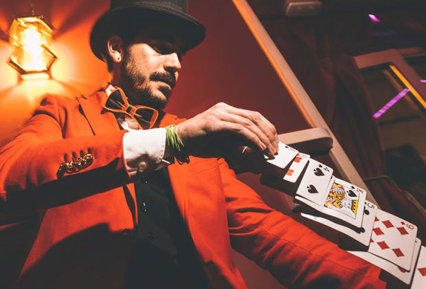 ¡Vive una experiencia de magia inmersiva en mitad de Barcelona! El artista Tyler Haze te llevará en "Nada y Menos" a un viaje mágico, través de una secuencia de imposibles extraídos de la realidad propia e individual del artista y compartidos en íntima proximidad con el público. El foco de la actuación serán los objetos comunes y cotidianos tales como cartas, monedas, gomas elásticas, anillos y demás desvaríos inimaginables. Además, podrás disfrutar de una copa u otras bebidas durante la actuación, en el sofisticado cocktail bar Somnia. ¡Una experiencia para deleitar a tus sentidos!