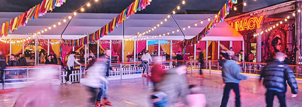 Ready, steady, skate! Glide on over to Luna Springsโ Digbeth Ice Rink for the ultimate ice-skating experience. After picking up your skates, take to the ice for an hour of Christmas magic. Surrounded by festive sights and the sounds of the holiday season, admire the twinkling fairy lights and the all round good vibes. If youโre looking for some winter fun, this is the perfect place for families, couples and friends alike!