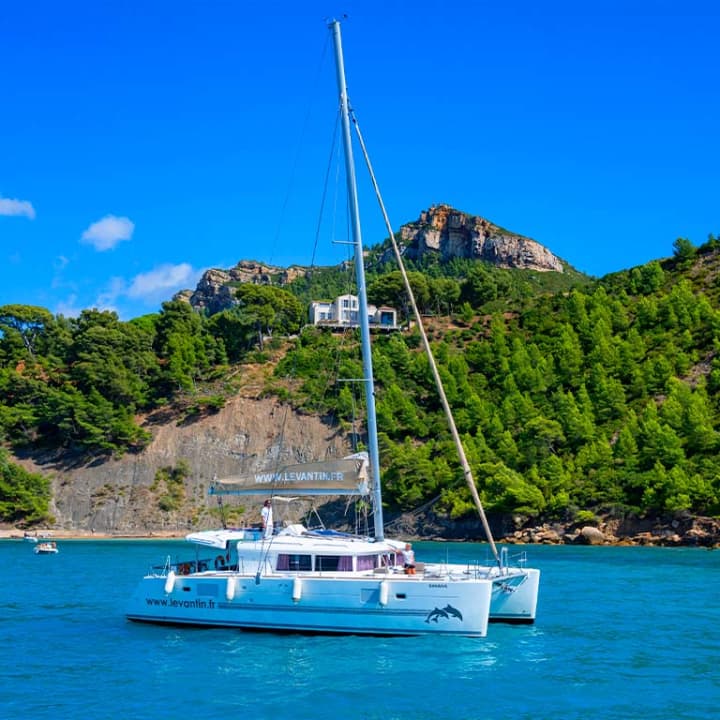 Largue les amarres pour une balade inoubliable au cœur d’un patrimoine naturel exceptionnel ! À bord d'un catamaran, explore les côtes de la Méditerranée et profite de la vue en savourant un délicieux brunch en famille ou entre amis. Ensuite, enfile ton maillot de bain et pars en exploration, les Calanques de Marseille n'auront plus aucun secret pour toi ! Découvre la faune et la flore marine équipé d'un masque et un tuba et repars avec des souvenirs plein la tête.