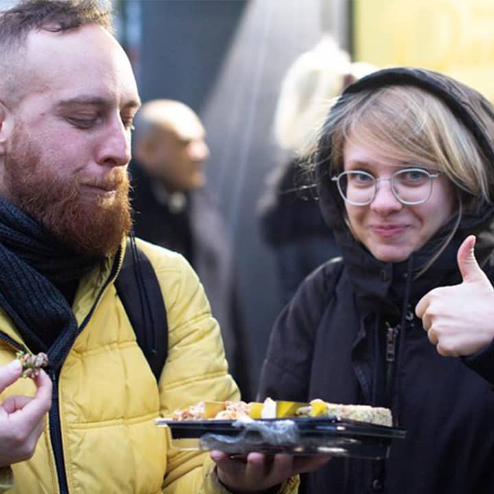 Mache einen Spaziergang entlang der Sonnenallee, einer der belebtesten Straßen Berlins im Herzen von Neukölln. Entdecke die Geschichte, Komponenten, Zubereitung und kulturelle Rolle im gesamten Nahen Osten, während Du familiengeführte arabische Restaurants und Geschäfte besuchst und traditionelle hausgemachte Köstlichkeiten probierst. Verkoste die besten Oliven der Stadt, syrische Desserts, verschiedene und köstliche Hummussorten und natürlich das berühmteste Produkt: Falafel!