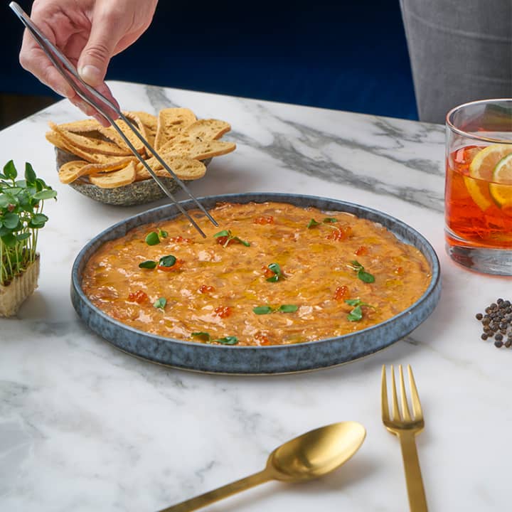 - Macarrón de queso azul con agua de manzana