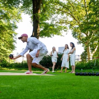 Lawn bowling or, bocce ball, can be traced back to the 13th century, but it still holds up today. It is a fun and easy game to play for amusement, socializing and a little competition. Weβll teach you all you need to know and get to playing several rounds right away. Space is limited to 8 people. Following the games, the group will sit and enjoy socializing in the park. The team with the most large balls closest to the smaller balls wins!
