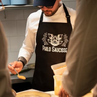 Grand fan de Top Chef ? Ce restaurant éphémÚre est fait pour toi ! Wilfried, Mickael et Arnaud, les vainqueurs de l'épreuve "La Guerre des Restos" de Top Chef 2021 t'ont réservé un accueil tout particulier au Philo Saucisse. Dans l'ambiance conviviale de 2 espaces uniques qui reprennent les décors de l'épreuve et du garde-manger de Top Chef, déguste le menu gagnant qui revisite la traditionnelle saucisse, accompagné d'un verre de vin. Si tu préfÚres, rends-toi au bar à cocktails La Boucherie et savoure une copieuse planche de charcuterie, parfaitement associée à deux cocktails signés Grey Goose. Tu vas te régaler !
