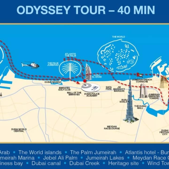 🚁 رحلة بطائرة هليكوبتر خاصة من أوديسي لمدة 40 دقيقة توفر إطلالات بانورامية استثنائية على دبي ومعالمها