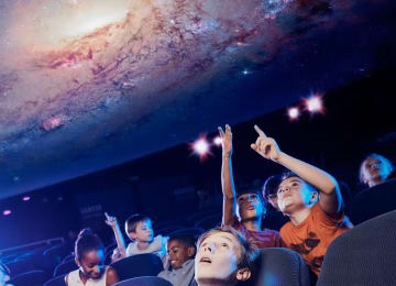 - Installe-toi sous un écran hémisphérique 360° et voyage parmi les étoiles et les galaxies grâce à un simulateur astronomique ultra haute définition (8K). Grâce aux boîtiers interactifs, participe toi-même au spectacle et explore l’Univers comme jamais auparavant.