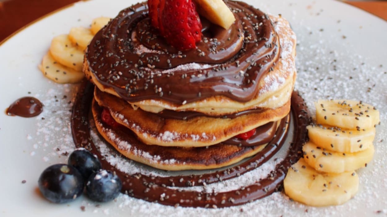 who doesn't want to start the day sharing a sweet breakfast? Delicious pancakes with strawberry, blueberry and chocolate compote accompanied by a fresh fruit smoothie. We have several options of flavors, all refreshing and without added sugars Start the day with a delicious menu! Enjoy your breakfast menu at Mafrens Madrid!