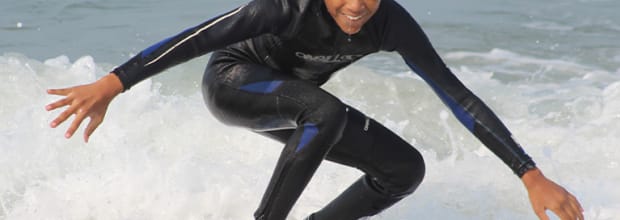 - Tabla de surf y traje de neopreno