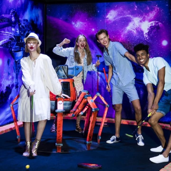 Get lost in the depths of space with Out of This World, a blacklight mini-golf experience for the entire family. Putt your way through alien landscapes, uncharted planets, cool spaceships, and robot realms, all under the glow of vibrant colors and blacklights. With 18 tricky holes to challenge you, you can take your mini-golf game to a whole new dimension! post_purchase: * Check [here](https://americandream.com/hours-and-directions) for the latest information on opening and closing times * Booking ID: 5532 usage: * Present your American Dream mini-golf tickets at the window * Tickets are valid for the specified date and time period of purchase only pre_purchase: * Children aged 2 years and younger visit for free (restrictions apply) * Height and weight restrictions apply at all rides, slides, and attractions included: * One round (18 holes) at the American Dream Blacklight Mini-Golf course