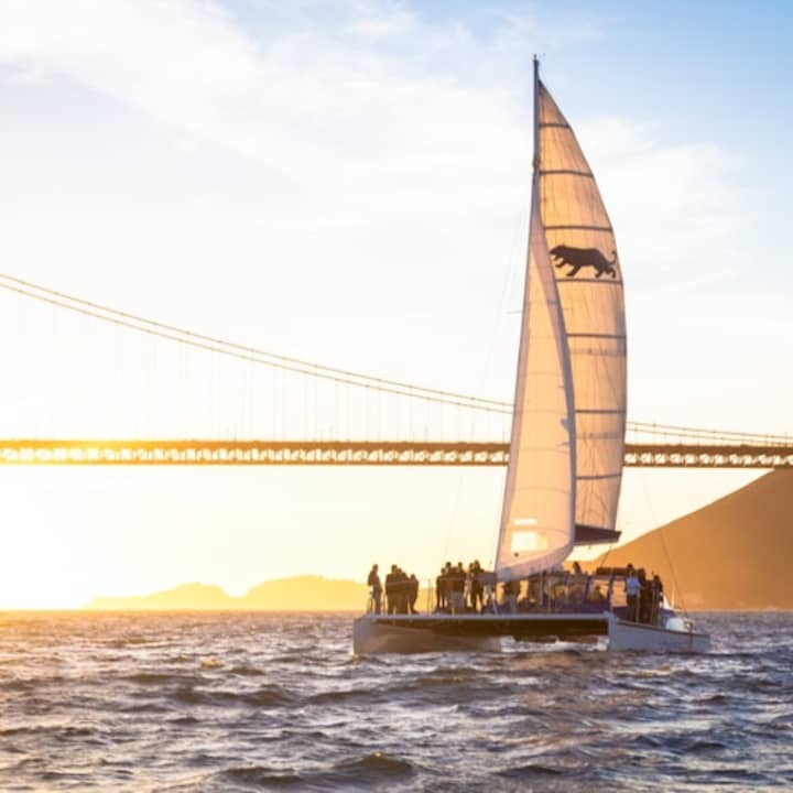 Set sail on a luxury 90-minute sunset catamaran cruise in San Francisco Bay, taking in iconic views like the Golden Gate Bridge while enjoying a complimentary drink.