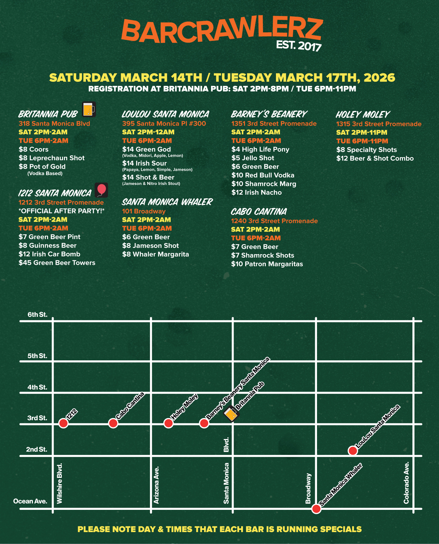 ST. PATRICK'S 2026 MAP & SPECIALS