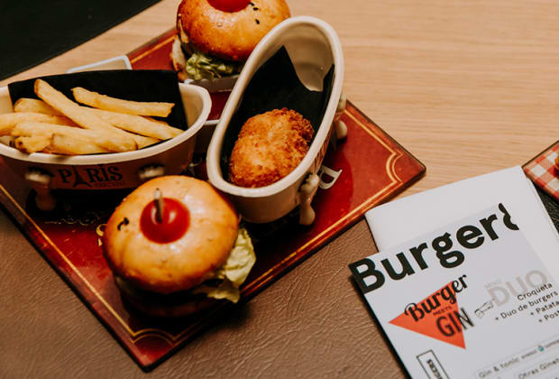 👉 Ambas opciones incluyen dúo de burgers caseras + croqueta + patatas fritas + postre