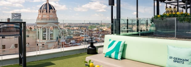 ¡Bébete el cielo de Madrid! Ella Sky Bar es un oasis en el centro de la ciudad inesperado que descubrirás en la planta 10 de uno de los edificios más emblemáticos de la capital, en Gran Vía 42. Su espacio se divide en una zona de restauración y una barra, al que se le suma una impresionante azotea. ¡Disfruta de tu menú de copas y cócteles en Ella Sky Bar, Madrid!