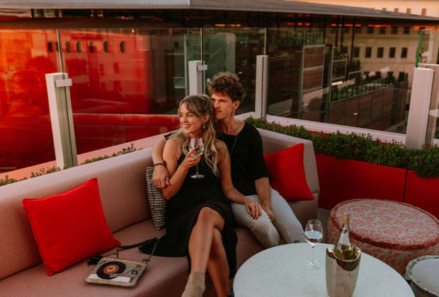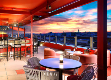 Frente al histórico Museo Nacional Centro de Arte Reina Sofía, en pleno centro cultural de la capital, se encuentra el Hard Rock Hotel Madrid. Con unas vistas impresionantes, atardeceres que quitan el hipo y su aire desenfadado, el rooftop RT60 es el sitio perfecto para disfrutar de un delicioso cóctel. ¡Disfruta de tu menú de copas y cócteles en Hard Rock Hotel Madrid!