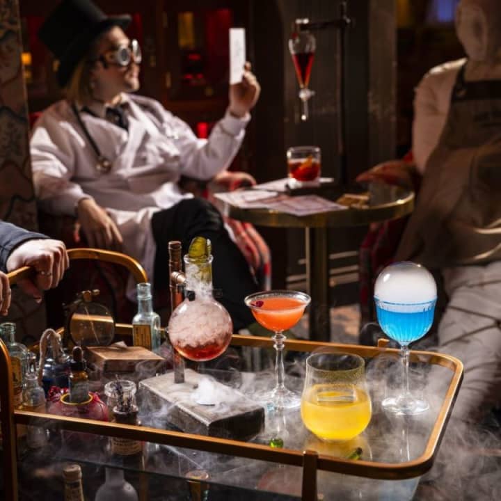 Enter the mysterious Elixir Room and unleash your inner mad Victorian scientist with two hours of cocktail-making and experimenting. Led by one of Mr Fogg's daring Pharmacists, you'll mix unique ingredients that fizz, bubble, and even transform the colour of your concoctions. Explore the limits of mixology, as you experiment with an elixir that can miraculously uncover hidden cocktail ingredients. Sip and savour your creations, as you discover a world of complex and unexpected flavours. Get your tickets now to Mr Fogg's Cocktail Experiments, London!
