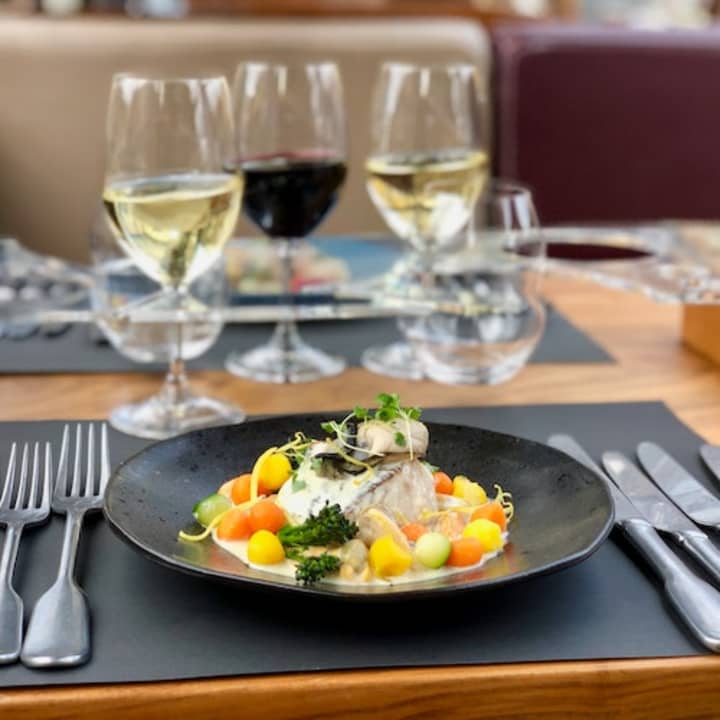 Age: 13+. 4 Course lunch with wine pairing (2 glasses of wine, hot drink and water - still or sparkling) | No alcohol under 18 years old