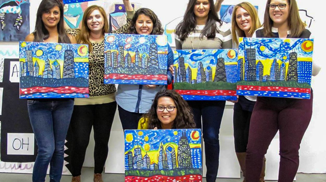 Unleash your inner artist and experience the vibrant fusion of art and Chicago at Color Cocktail Factory's BYOB painting session! Immerse yourself in the enchanting world of Van Gogh's 'The Starry Night' intertwined with the iconic Chicago skyline, as you create a breathtaking masterpiece that reflects your unique vision. Our expert instructor will be your creative compass, guiding you through each stroke and helping you personalize your artwork with cherished colors, beloved landmarks, and cherished memories. No art experience necessary – just bring your favorite drink, and we'll supply the artistic magic. Get your tickets now to Van Gogh Visits Chicago in NYC!