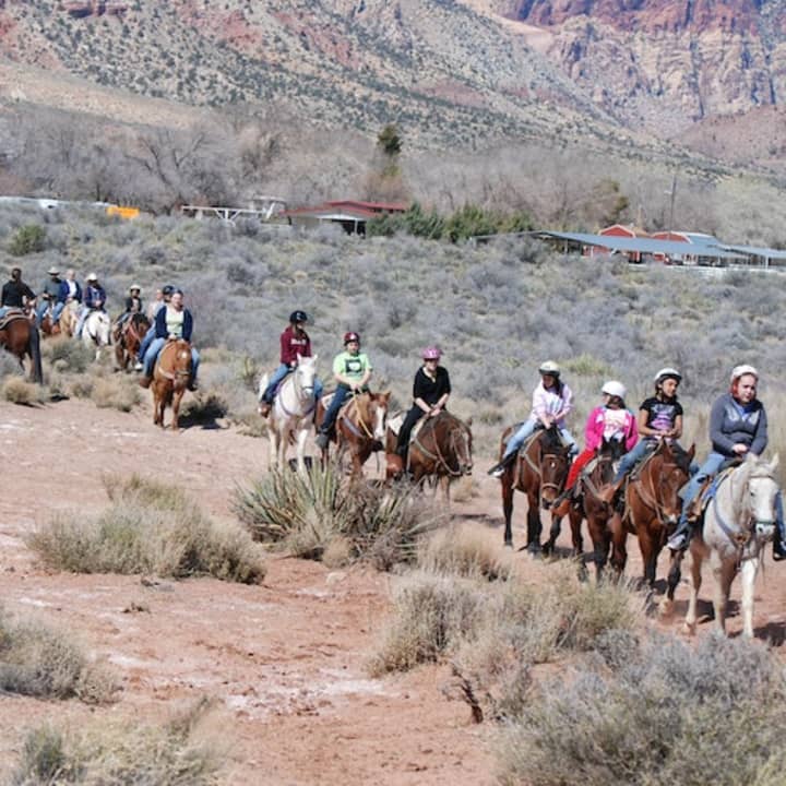 Experience the ultimate adrenaline rush and break free from the glimmering allure of Las Vegas with the exhilarating Maverick Horseback Ride and Breakfast adventure! Prepare to be whisked away from your hotel, where you'll dive into a scrumptious breakfast fit for a cowboy. Then, brace yourself as you embark on a wild and dusty trail atop your sturdy steed, immersing yourself in the spirit of the Wild West. Marvel at awe-inspiring mountain vistas, encounter a genuine frontier town, and even cozy up to adorable creatures in the petting zoo! So saddle up, folks, because this is the cowboy extravaganza you've been dreaming of! Get your tickets now!