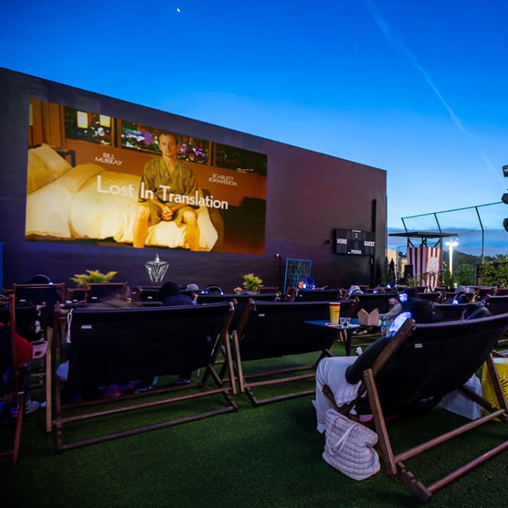 🌆 Enjoy a rooftop movie night under the stars with stunning Hollywood views