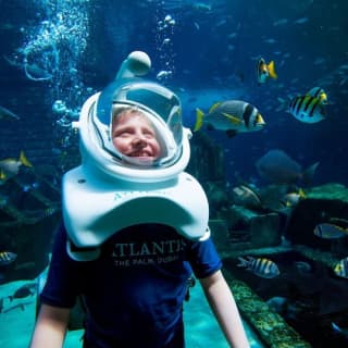 ⭐ أتلانتس دبي: حديقة أكوافنتشر المائية + تجربة سفاري مع القرش أو الغطس يسمح لك بالسباحة بجانب أسماك القرش وأسماك الراي اللساع والحياة البحرية الملونة، مما يوفر تجربة فريدة ومثيرة تحت الماء.