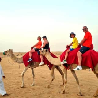 Embark on an exhilarating Arabian escapade amid the enchanting red dunes, feeling the pulse-quickening thrill as you meet your expert guide and mount a charming camel for a peaceful journey through the vast desert. Engage with the awe-inspiring scenery, seize the opportunity to capture unforgettable moments with these majestic creatures, and create lasting memories. This extraordinary adventure encompasses a convenient hotel pick-up, a thrilling 4-hour trek, and memorable photo stops. Don't miss out on this extraordinary opportunity – it's an experience that you absolutely cannot afford to pass up!