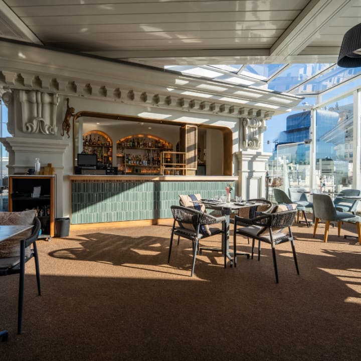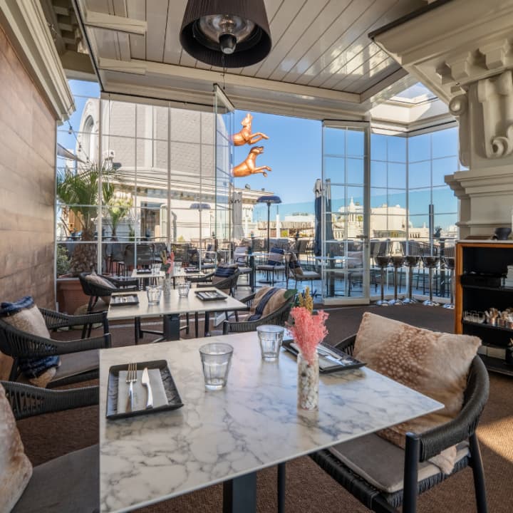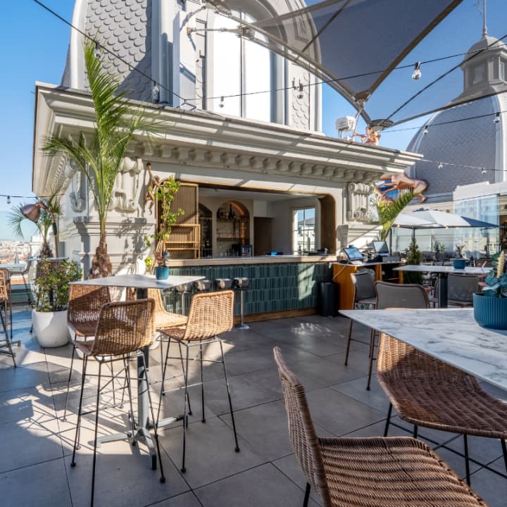 🌱 Accede a un bar secreto en la décima planta, con impresionantes vistas a la vibrante Gran Vía, el alma de Madrid
