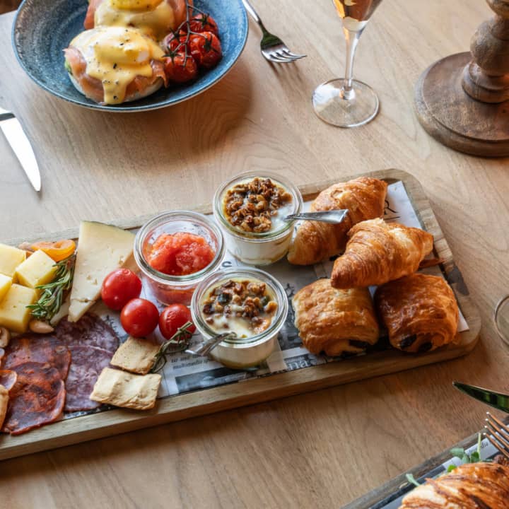 - Principales: Huevos benedictine con salmón ahumado y aguacate, huevo florentine con espinacas salteadas, croissant de secreto ibérico, col china encurtida, escarola, alioli de jalapeños y miel, street burger de pollo crujiente con tártara hyc, guacamole con pico de gallo, totopos crujientes y dados de queso a la plancha
