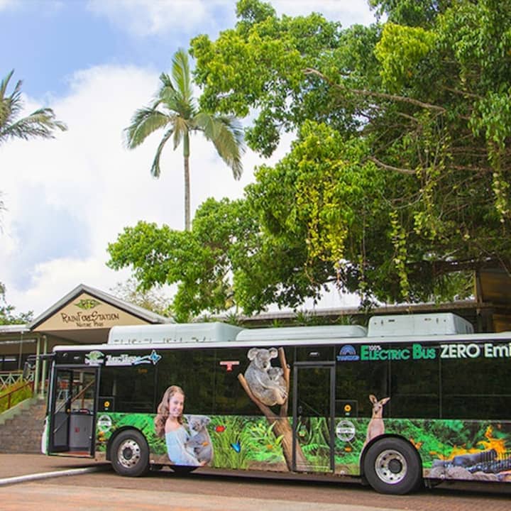 Jump aboard an eco-friendly electric bus in Cairns and get whisked away to the unbeatable Rainforestation Nature Park. You'll explore the wonders of the lush rainforest. And that's not all! Get up close and personal with adorable kangaroos as you hand-feed them. But wait, there's more! You'll glide above the jaw-dropping rainforest on the Skyrail Rainforest Cableway. Get your tickets now!