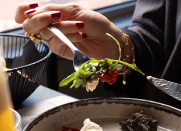 - Huevos benedictinos con aguacate, paletilla ibérica, salsa holandesa y cebollino