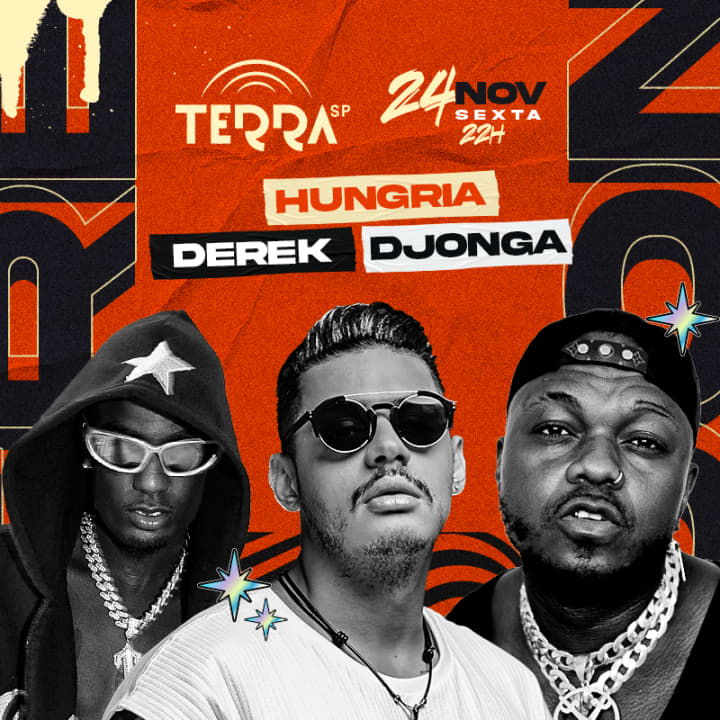 ⭐ Venha curtir um evento único para quem é fã de rap! Djonga, Hungria e Derek sobem ao palco do Terra SP quebrando tudo com versos marcantes e um flow incrível. E você não vai ficar de fora, né?!