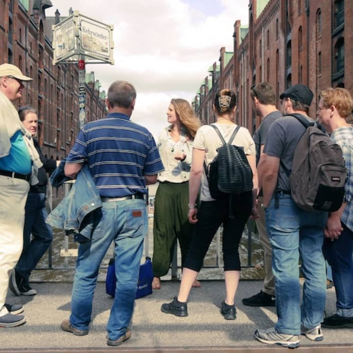 đ¶ Begleiten Sie einen fröhlichen Tourguide auf einem Spaziergang durch die Hafen- und Speicherstadt