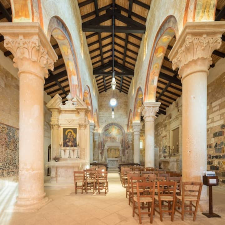 Scopri un gioiello segreto nel cuore della Puglia! L'Abbazia di Santa Maria di Cerrate ti accoglie con i suoi splendidi affreschi bizantini e il rilassante chiostro. Potrai raggiungerla in soli 10 minuti di macchina da Lecce e immergerti in un'esperienza culturale indimenticabile. Una scelta serena per arricchire il tuo viaggio nel sud Italia.