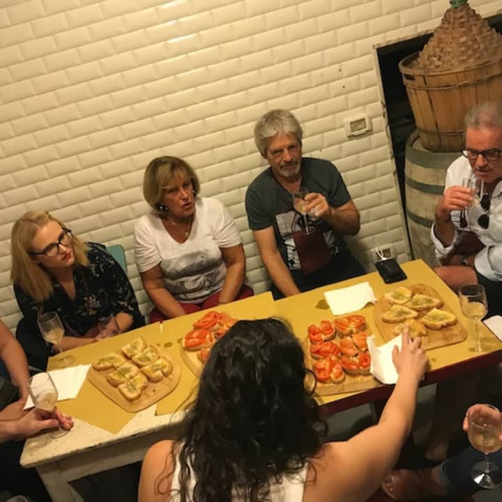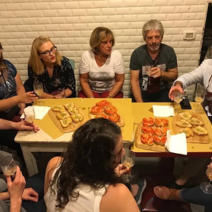 - Comprensivo del seguente: 4 bicchieri di vino Chianti, aperitivo con assortimento di stuzzichini e snack tipici della zona, visita guidata a piedi di Firenze.