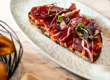 - Tosta de tomate y jamón ibérico