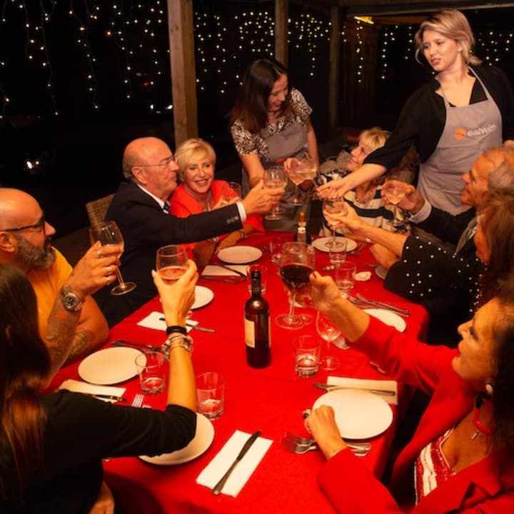 Unisciti a Debora e a sua figlia Fiamma per una deliziosa cena romana in cima alla collina del Gianicolo! Il pasto di 3 portate sarà servito con vino locale e amore, e cenerai sul loro bellissimo balcone. Una delizia per coppie e gruppi che desiderano assaporare la cultura locale durante la cena.
