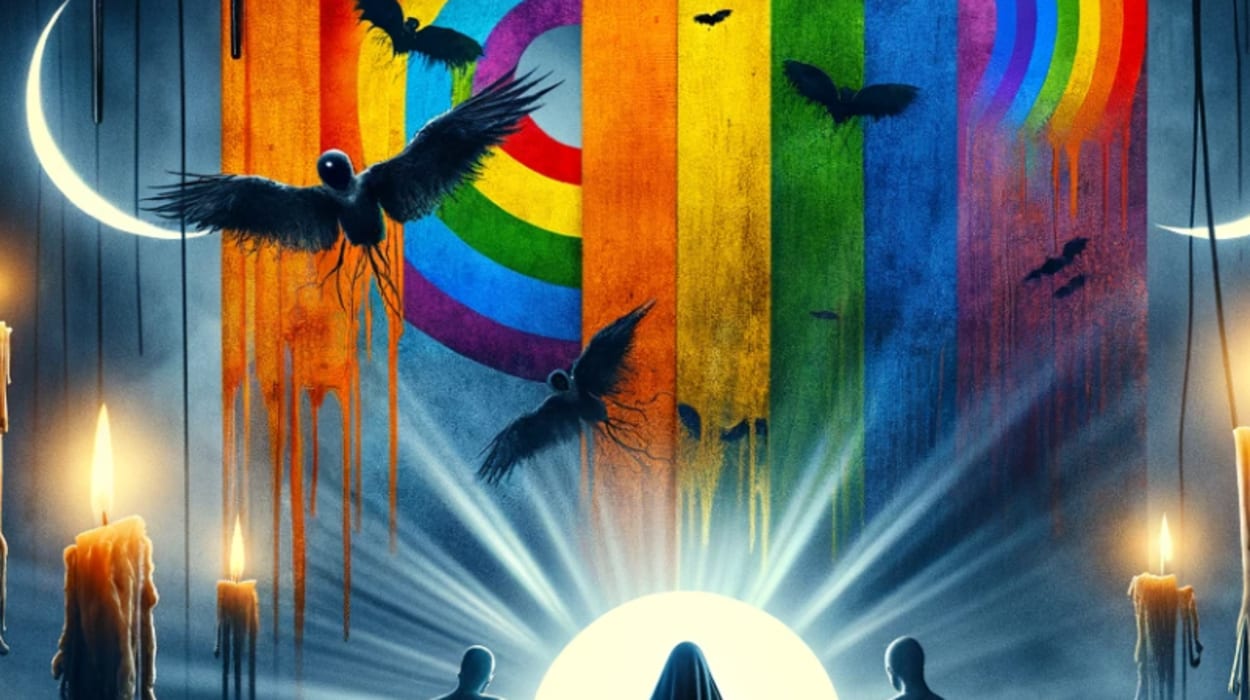 👻 Delve into the domain of an enigmatic figure whose haunting secrets unveil a story of fear and courage interlaced with a proud rainbow thread.