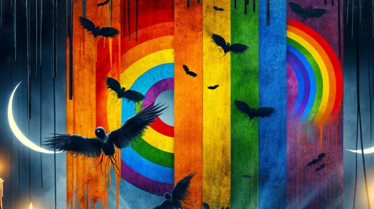 👻 Delve into the domain of an enigmatic figure whose haunting secrets unveil a story of fear and courage interlaced with a proud rainbow thread.