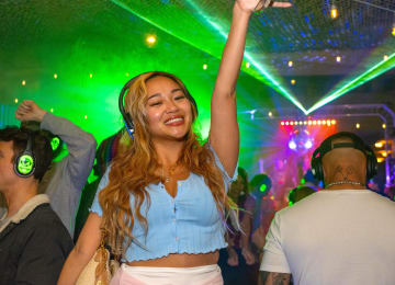 Baila del día a la noche en The Waterfront, en el mundialmente famoso paseo marítimo de Venice Beach, y participa en este festival de discoteca silenciosa único en su género Ponte los auriculares de alta fidelidad y elige entre 5 canales de audio, donde 5 DJs en 5 escenarios diferentes pincharán simultáneamente canciones y dejarán caer ritmos con un sonido de calidad de estudio. Con un total de 10 DJs rotatorios, hay una amplia gama de géneros musicales y algo para todos. Cada canal de los auriculares brilla de un color diferente, para que puedas conectar y bailar con otras personas que escuchen la misma música. Un fascinante despliegue de láseres, hazers, luces negras y bolas de discoteca, combinado con ritmos y cuerpos palpitantes, hacen de esta experiencia una velada inolvidable de alegría desenfrenada. Así que, consigue tus entradas para Sunset Vibes Silent Disco en Venice Beach mientras puedas. Ven por la puesta de sol... ¡quédate por las vibraciones!