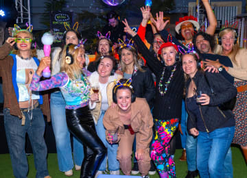 🤩 Únete a la mejor experiencia de discoteca silenciosa en The Waterfront, el restaurante/bar al aire libre más animado del mundialmente famoso paseo marítimo de Venice Beach