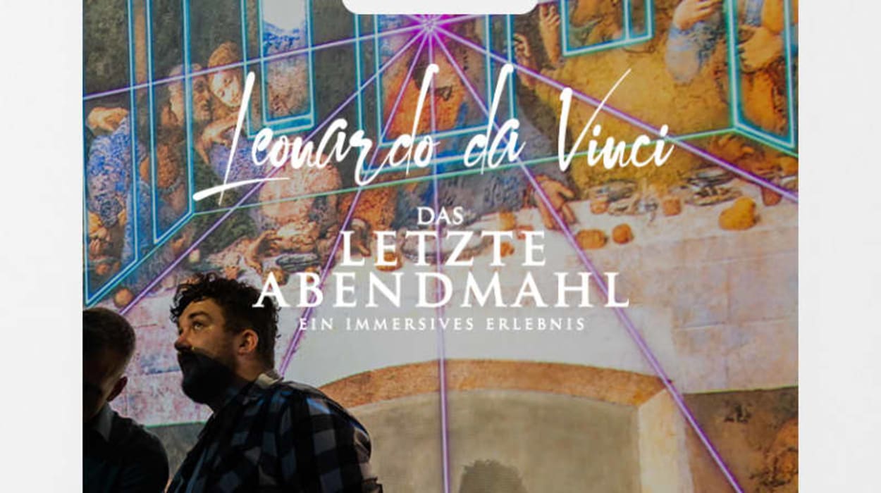 Mach Dich bereit für „Das letzte Abendmahl“ des grossen Da Vinci und betrachte es so detailliert und hautnah wie noch nie zuvor! Betritt einen 360-Grad-Raum, in dem Du sowohl jeden einzelnen Pinselstrich bestaunen, als auch jedes Geheimnis und die Geschichte hinter diesem bedeutenden Werk entdecken kannst. Umgib Dich mit atemberaubenden 360-Grad-Bildern auf einer Projektionsfläche von mehr als 500 m², die jeden einzelnen Aspekt zu Leben und Arbeit des berühmten Malers, weit über das Gemälde hinausgehend, offenbaren. Verpasse nicht diese aussergewöhnliche Gelegenheit, eines der berühmtesten Gemälde aller Zeiten aus einer völlig neuen Perspektive zu sehen, dank der unglaublichen Verschmelzung von Kunst und Technologie.