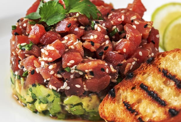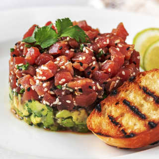 - Cone de sésamo com tártaro de atum e kimshi