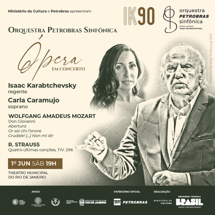 Em 1º de junho, a Orquestra Petrobras Sinfônica apresenta ÓPERA EM CONCERTO e convida a soprano Carla Caramujo para mais uma apresentação da sua temporada de Clássicos no Theatro Municipal do Rio de Janeiro. Um programa com obras de Wolfgang Amadeus Mozart e Richard Strauss, sob regência de seu regente titular e diretor artístico, Isaac Karabtchevsky.