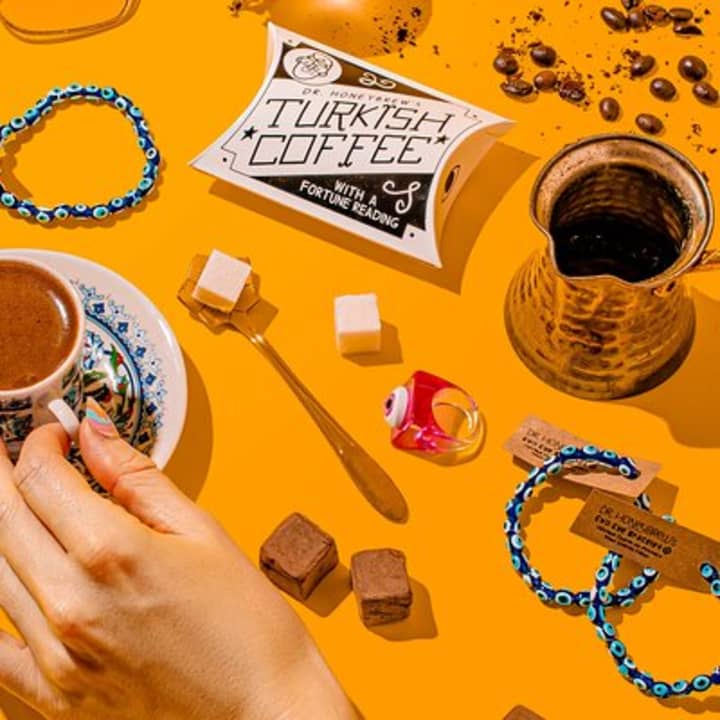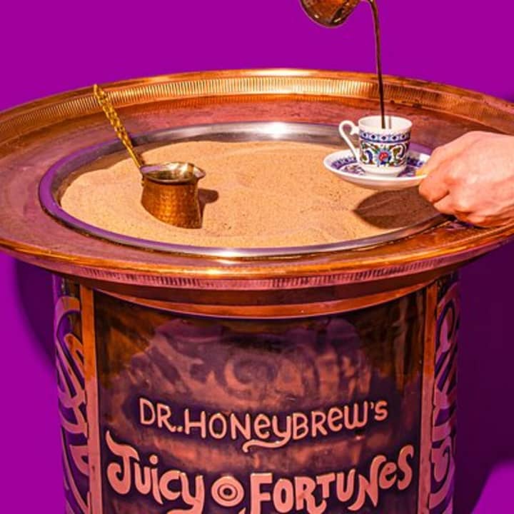☕ Enjoy Turkish coffee brewed over hot sand and a visual fortune-telling experience like no other at Dr. Honeybrew's.