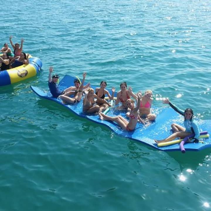 ✔️ Water trampoline, giant floating mat, and slide.
